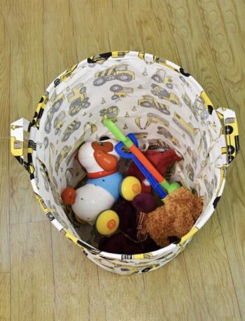 Cesta de lona liviana con motivos, para organizar juguetes o ropa.