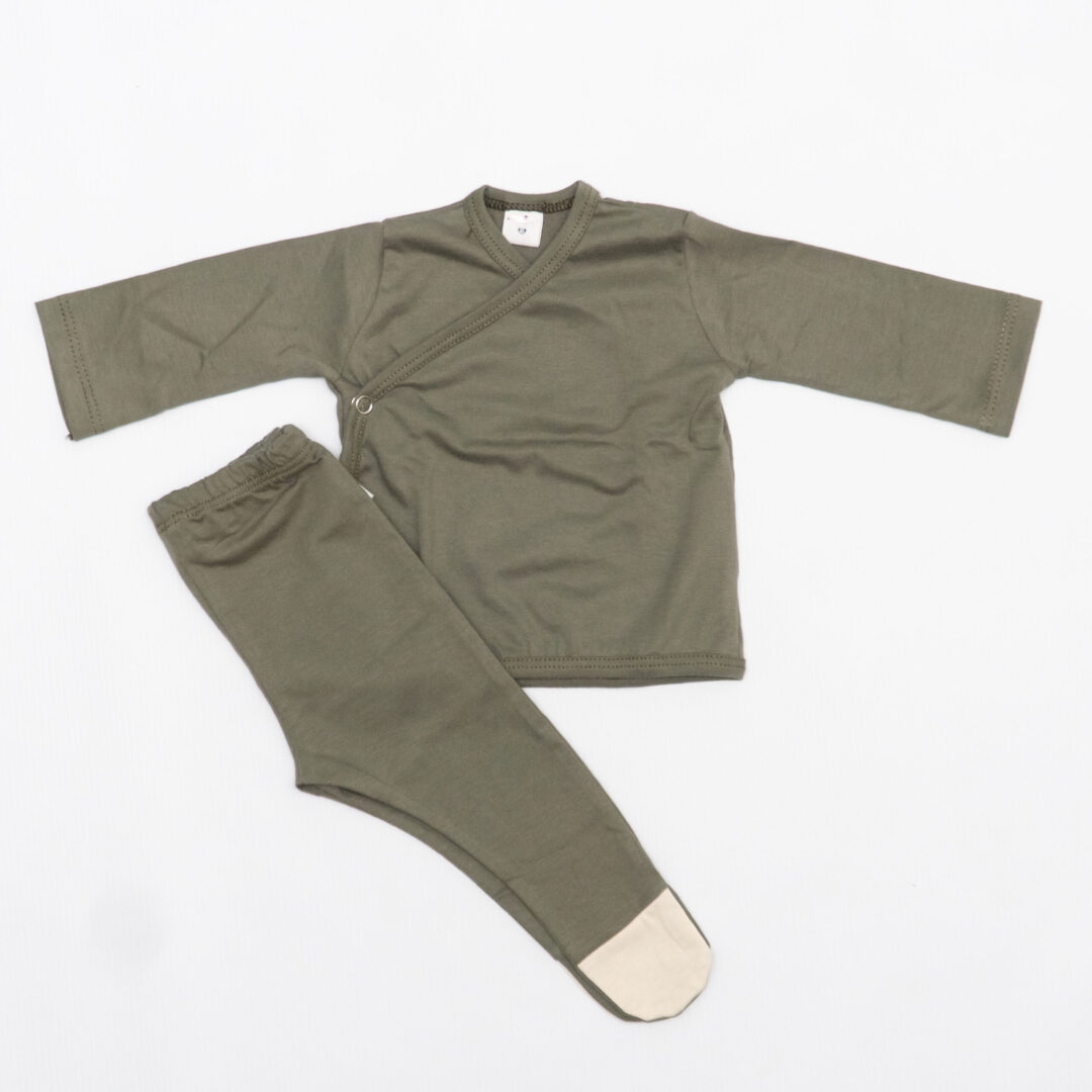 Ajuar para recién nacido 2 piezas de salvia. (abarca de los 2,5kg a 5kg)